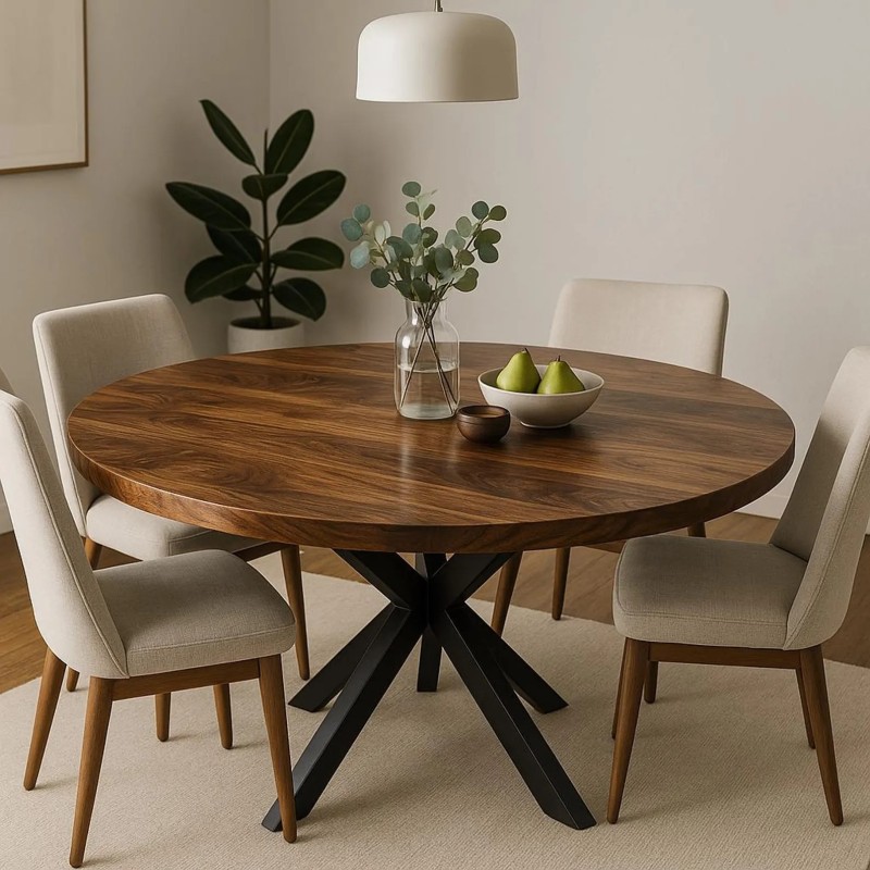 Designed for today’s compact yet luxurious homes, this acacia wood round dining table 4 seater fits beautifully into both apartments and villas. Its smooth, polished finish and minimalist silhouette complement a variety of interior styles — from Scandinavian simplicity to urban chic. Whether it’s an intimate family dinner or a cozy brunch with friends, this solid wood round dining table with metal legs sets the perfect mood for every occasion.