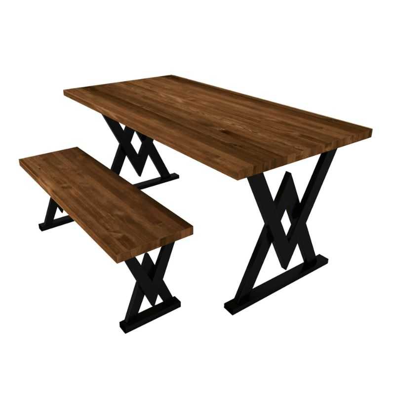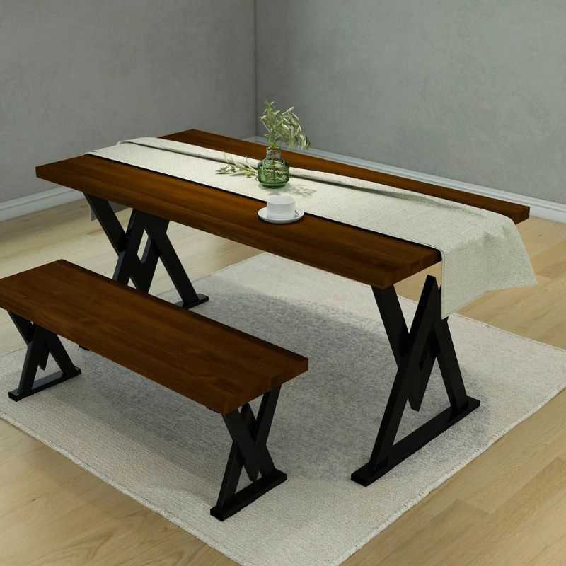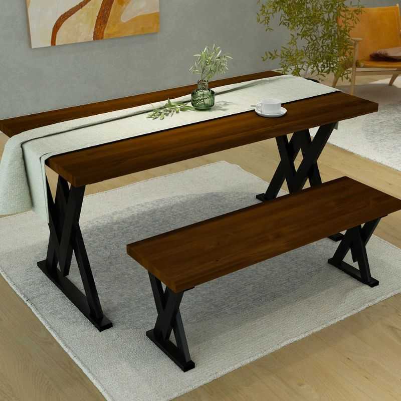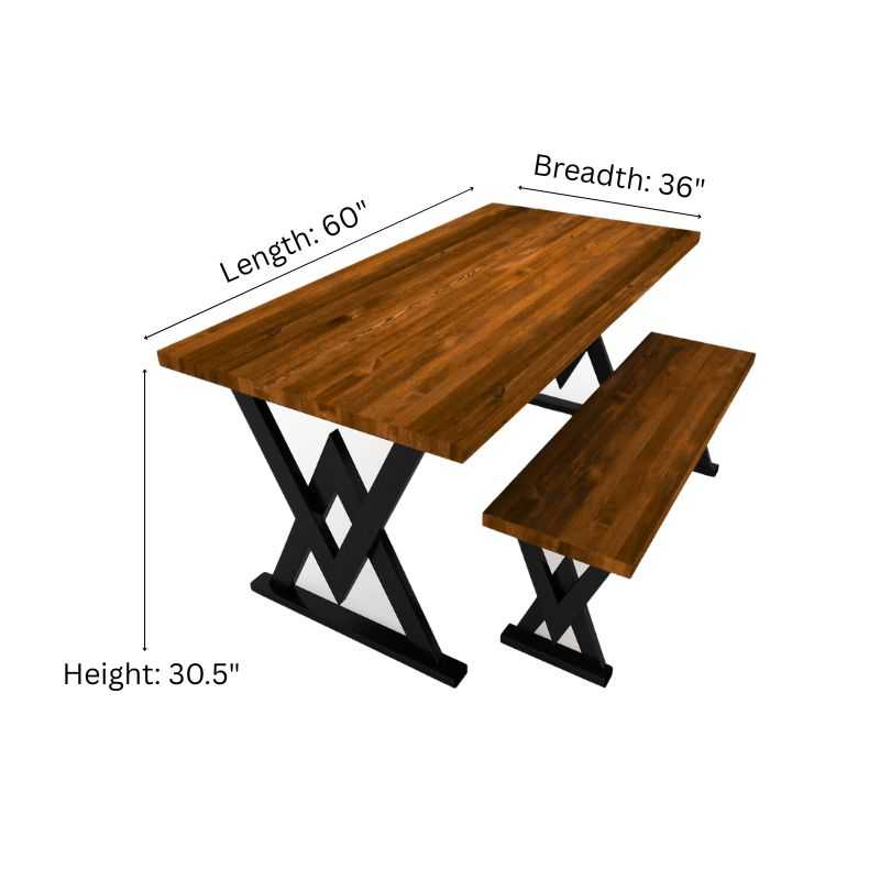 Upgrade your dining experience with this handcrafted Acacia Wood Dining Table Set, designed to blend industrial aesthetics with modern comfort. Featuring a bold X-leg metal base and rich walnut-stained solid acacia wood top, this set is built for everyday use while elevating your space’s character.