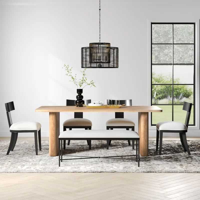 Elevate your dining area with this Contemporary Acacia Wood Dining Table, crafted to showcase the beauty of solid wood and natural tones. With softly curved edges and gracefully angled legs, this 6-seater table merges durability with sculptural charm. Made entirely from premium acacia wood, its broad surface comfortably hosts family meals, game nights, or festive dinners. The minimalist aesthetic makes it perfect for modern, Scandinavian, or Japandi-inspired interiors.