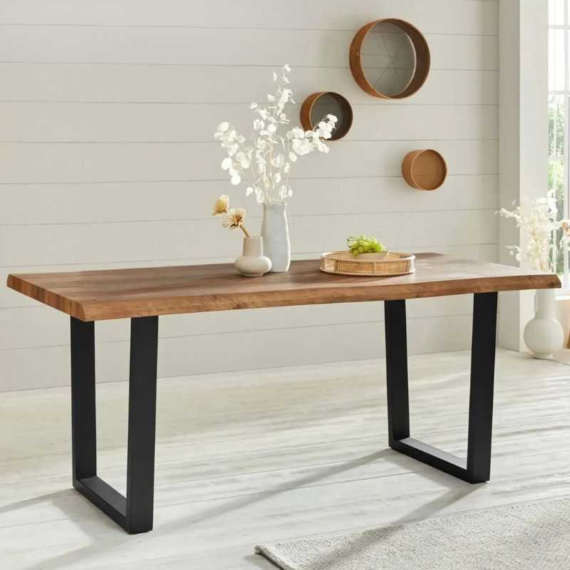 Elevate your dining space with this contemporary Acacia wood dining set with 2 bench, blending natural aesthetics and modern minimalism. Perfect for urban homes or statement dining rooms.