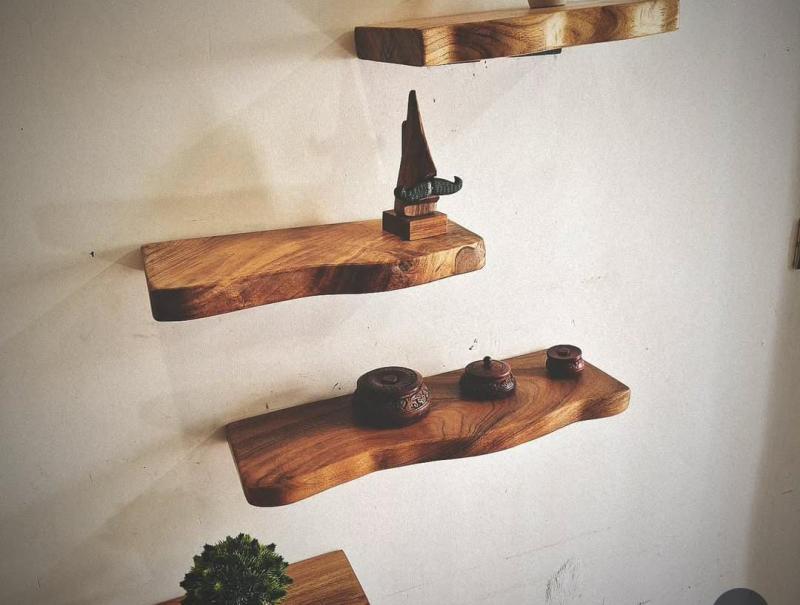 A live edge floating shelf is a wall-mounted wooden shelf that retains the natural edge of the wood, giving it a rustic and organic look. It's designed to appear as if it's "floating" without visible brackets or supports.