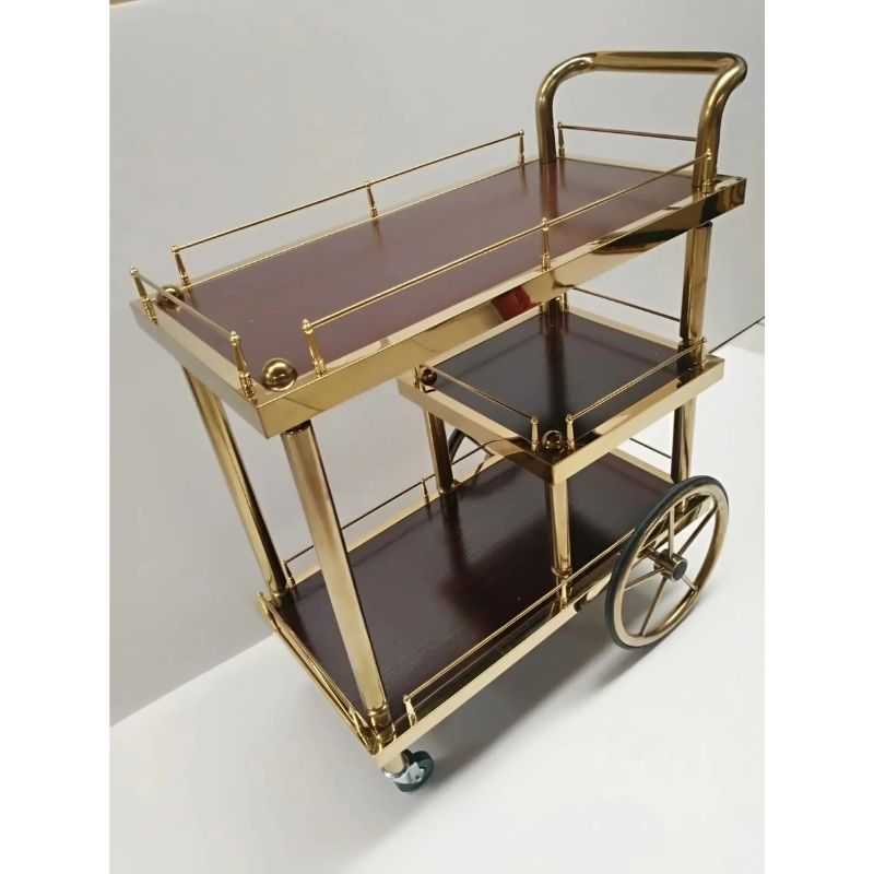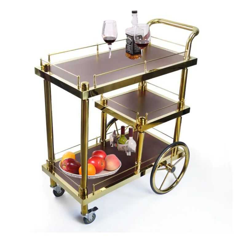 Elevate your hosting game with this luxury gold bar trolley with wheels, a perfect blend of style and functionality. Crafted with a sturdy powder-coated metal frame and finished in a rich gold tone, this 3-tier serving cart adds a touch of glam to any space.