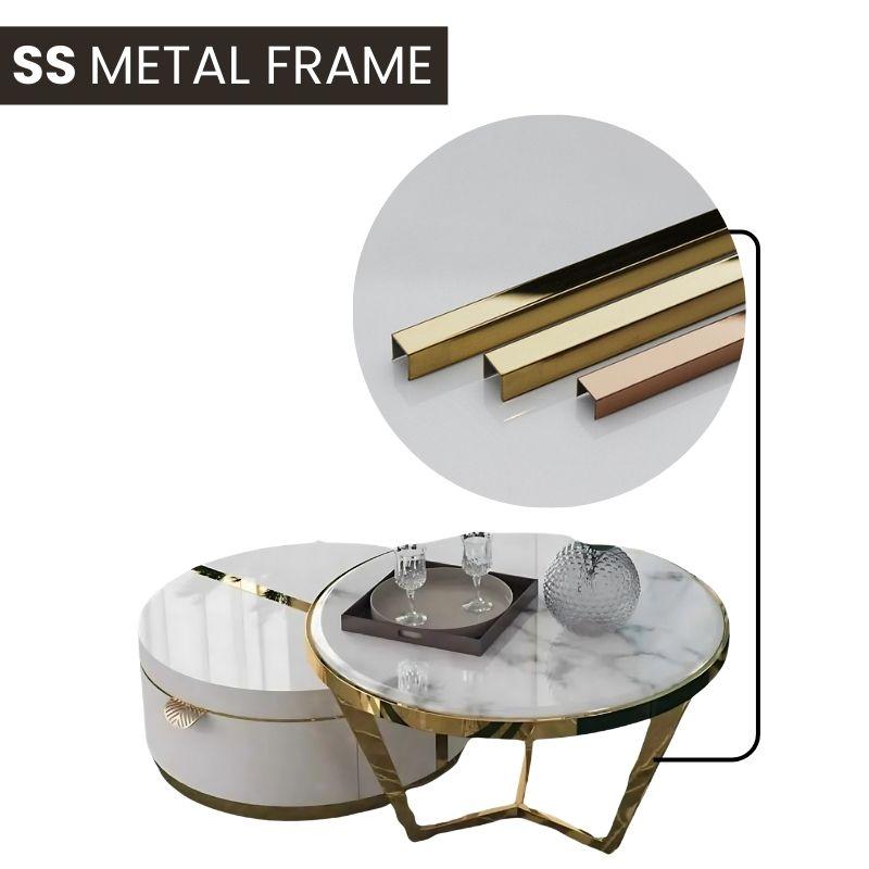 Enhance your living space with the Lyra Marble Luxury Centre Table by WoodEnsure, a perfect blend of refined charm and modern luxury. This piece features a pristine white marble top and a sleek gold frame, bringing elegance to any room.