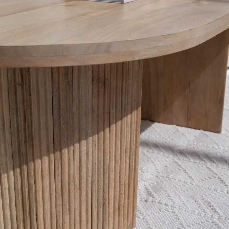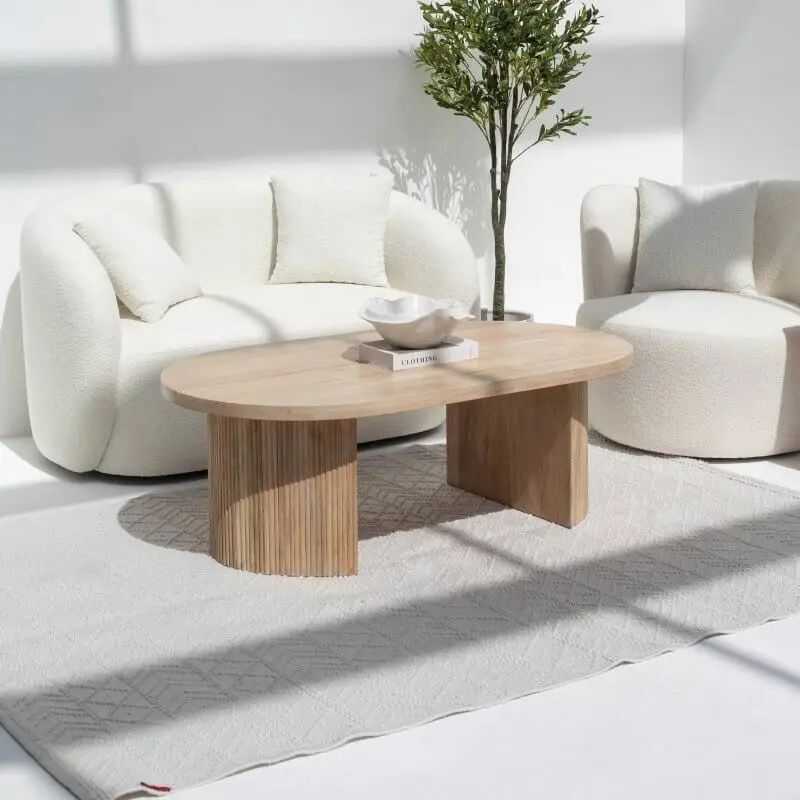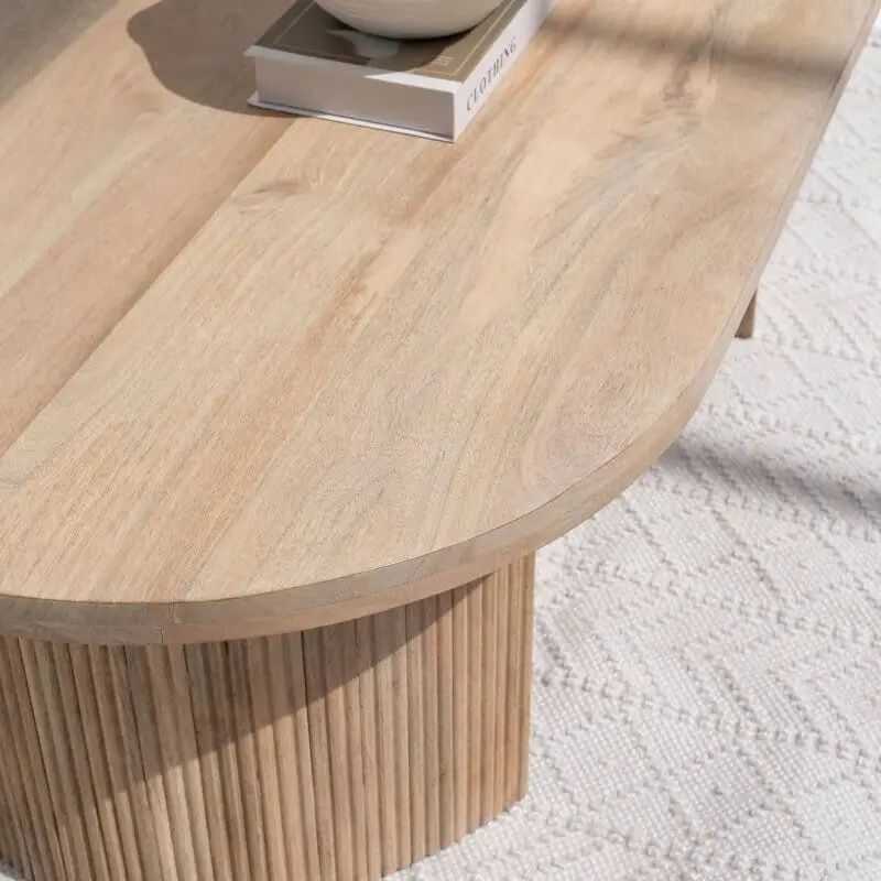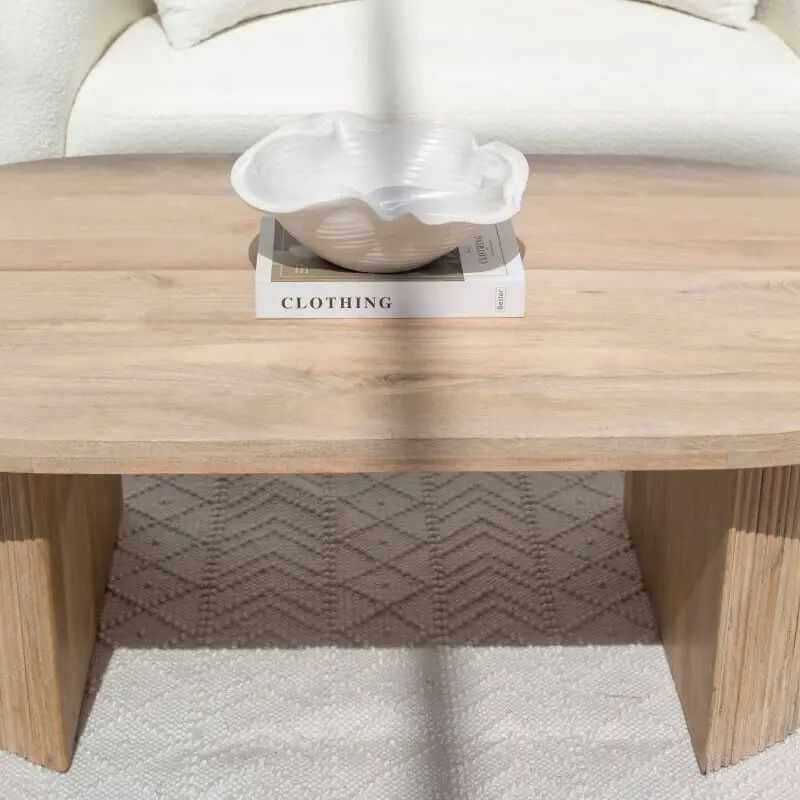 Elevate your living room with this modern minimalist acacia wood coffee table. Its light acacia finish and sleek oval shape bring a fresh, airy vibe, while the textured slat legs add a touch of sophistication. Perfect for coffee chats or displaying decor, this table blends style and functionality seamlessly. Grab yours now to refresh your space!