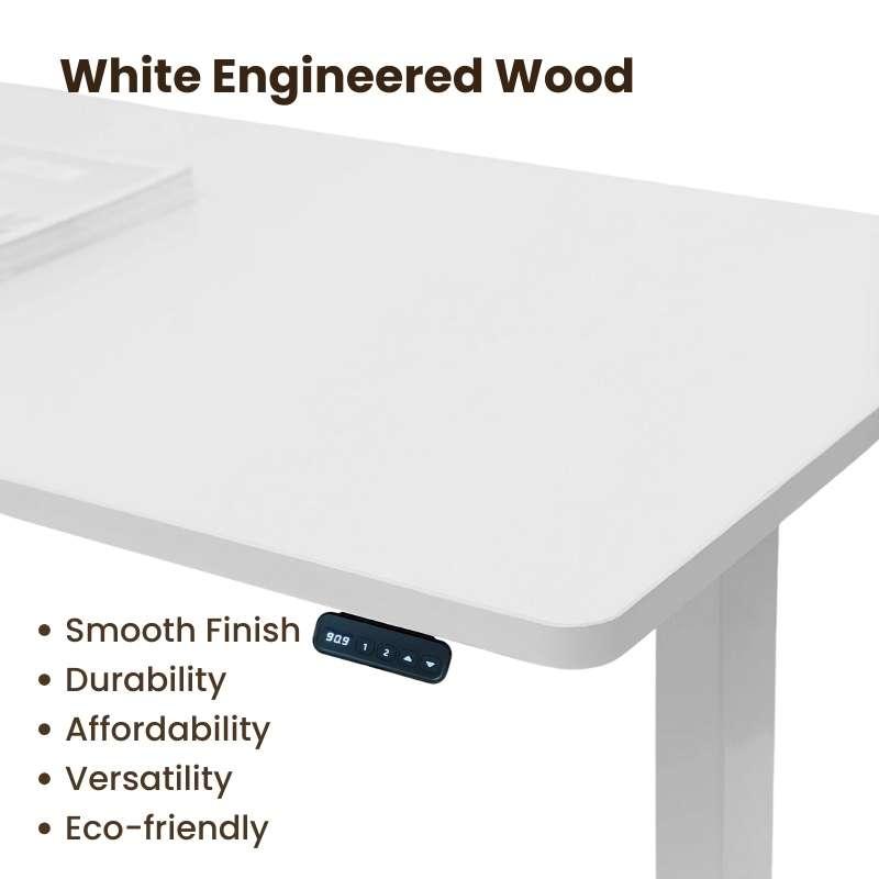 This Height Adjustable Table is a 1500mm White engineer wood table with White legs that comes with a height adjustment option and is equipped with an electric motor that helps adjust the height in no time. Electric sit & stand desk that is stylish, functional, and affordable. Crafted Options are available in engineer wood, Up & Down Tables have different designs and colours and a metal frame, this height adjustable table is beautifully eye-catching and serves as a functional to complement your work environment for office and home needs.