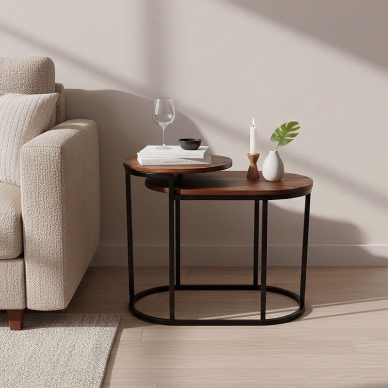 This nesting table's is 2 tier oval shape is the reason it has this unique appeal. It looks modern, stylish, and blends in with every interior design concept. Either you wish to find a coffee table, a bedside table, or an ornament piece to go with the interior, this table will maximize your space.