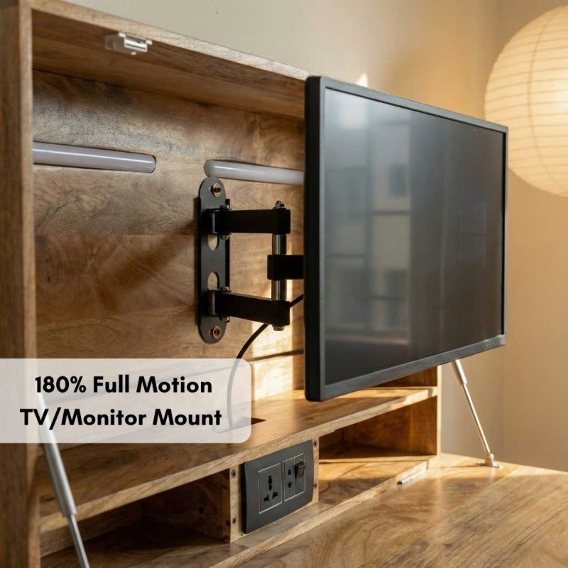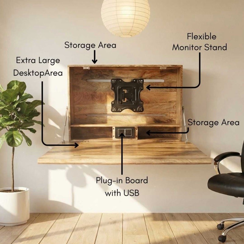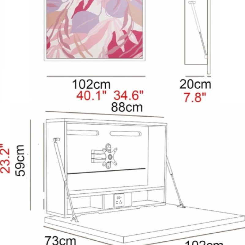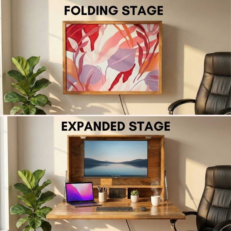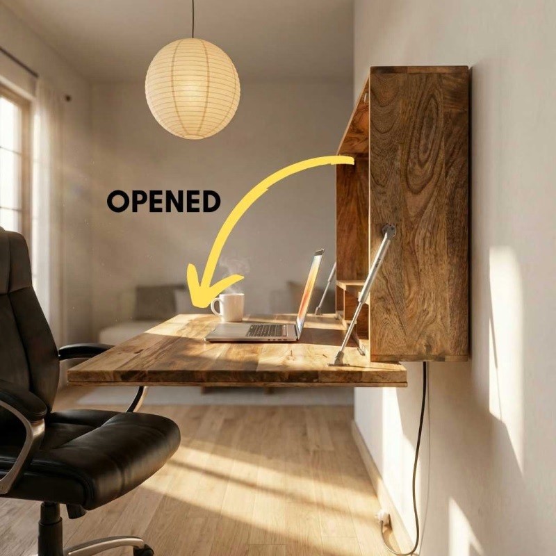 Built with a smooth drop leaf mechanism and heavy-duty hydraulic support, this drop down wall desk transitions effortlessly from a sleek wall panel into a spacious work surface. It functions beautifully as a fold down computer desk, droptop workstation, home office drop top, or even a fold up wall table for dining and study use. The integrated plug-in board with USB ports makes it ideal as a wall mounted foldable computer table for modern digital needs.