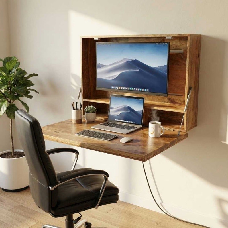 Maximize your space with the Acacia Wood Wall Mounted Fold Drop Down Desk/Table β a premium drop top desk designed for modern Indian homes and offices. Crafted from solid acacia wood, this wall mounted wooden desk blends durability, elegance, and intelligent space-saving functionality. Whether you are searching for a droptop desk India solution or a stylish fold down wall desk for compact living, this design transforms your wall into a functional workstation within seconds.
