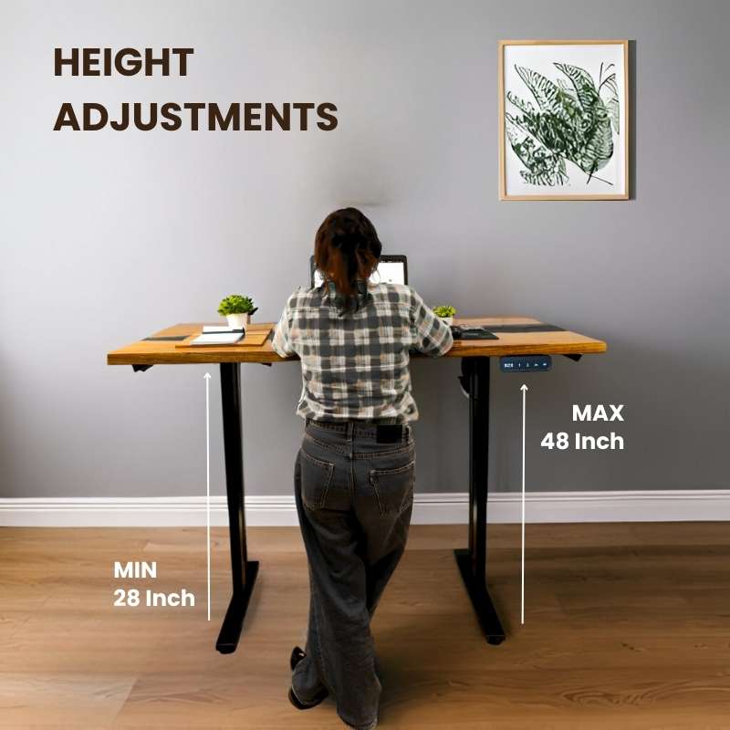 This Height Adjustable Table, a 48-inch Black opaque epoxy wood table with a height adjustment option, is equipped with an electric motor that helps in adjusting height in no time. Electric sit & stand desk that is stylish, functional, and affordable. Crafted Options are available in solid wood. Up & Down Ergonomic Table have different designs and color and a metal frame, this black opaque height adjustable table is beautifully eye-catching and serves as a functional to complement your work environment for office and home needs.