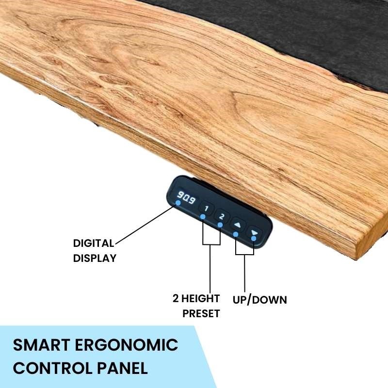 Quantum live edge height adjustable desk with black legs