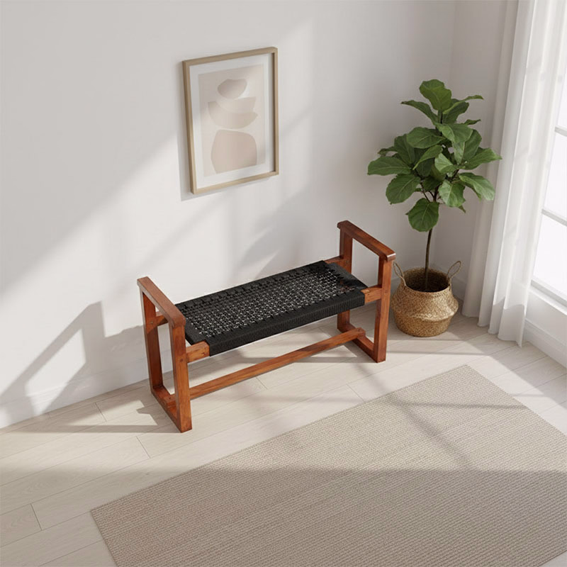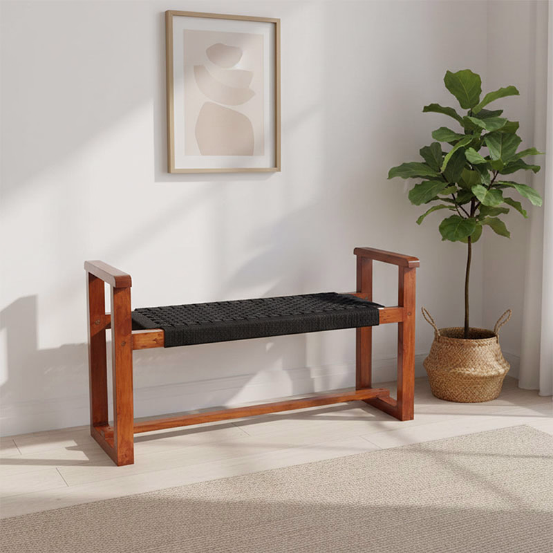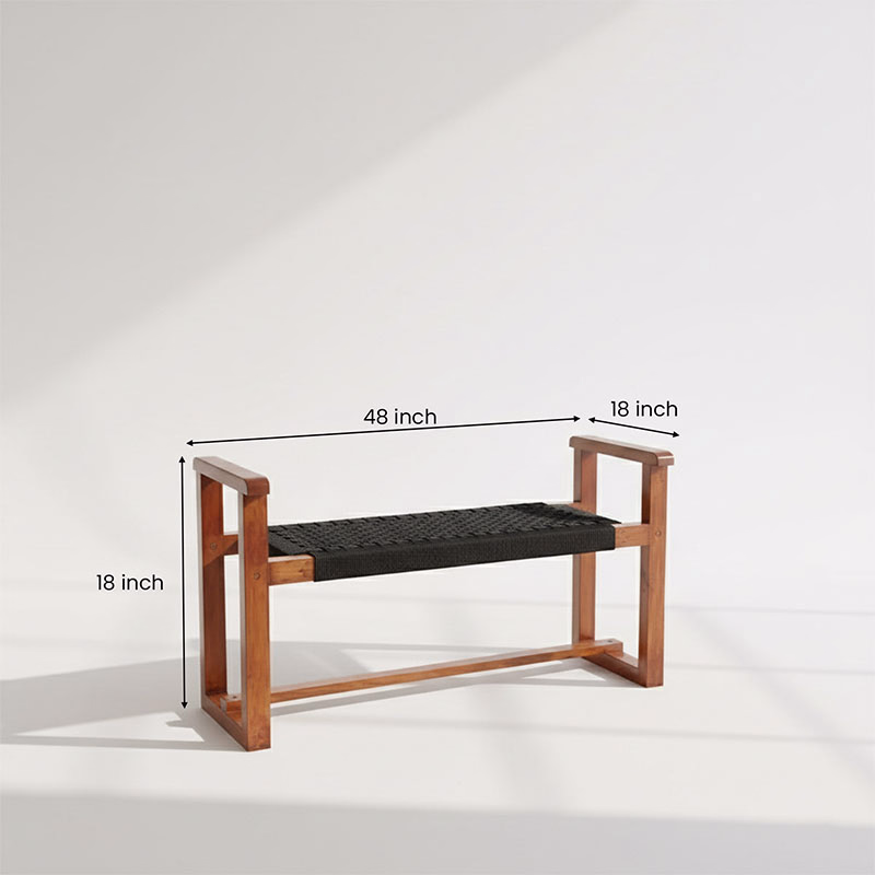 Providing style and decor for your outdoor and indoor setting, our Handmade Black Cotton Jute Rope Bench is a must-have. The structure of this jute bench is well-designed and made of black jute ropes – a material that is very sturdy and appropriate for use outdoors. This jute table is foldable. The comfortable seat is an ideal place to sit and have a beautiful view of the nature. The acacia wood frame enhances the stability and durability of this handmade black cotton jute rope bench for long-term use and an eye-catching appearance.