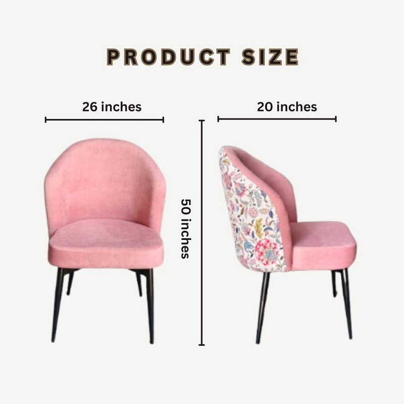 The Blush Pink Velvet Accent Chair with Floral Printed Backrest & Removable Black Wooden Legs – Dining Chair is a perfect blend of elegance, comfort, and durability. Designed to elevate modern interiors, this pink accent chair features soft velvet upholstery in a soothing blush tone, paired with a beautifully detailed floral backrest that adds a unique designer touch. Crafted from solid acacia wood, it ensures long-lasting strength while maintaining a refined, lightweight structure.