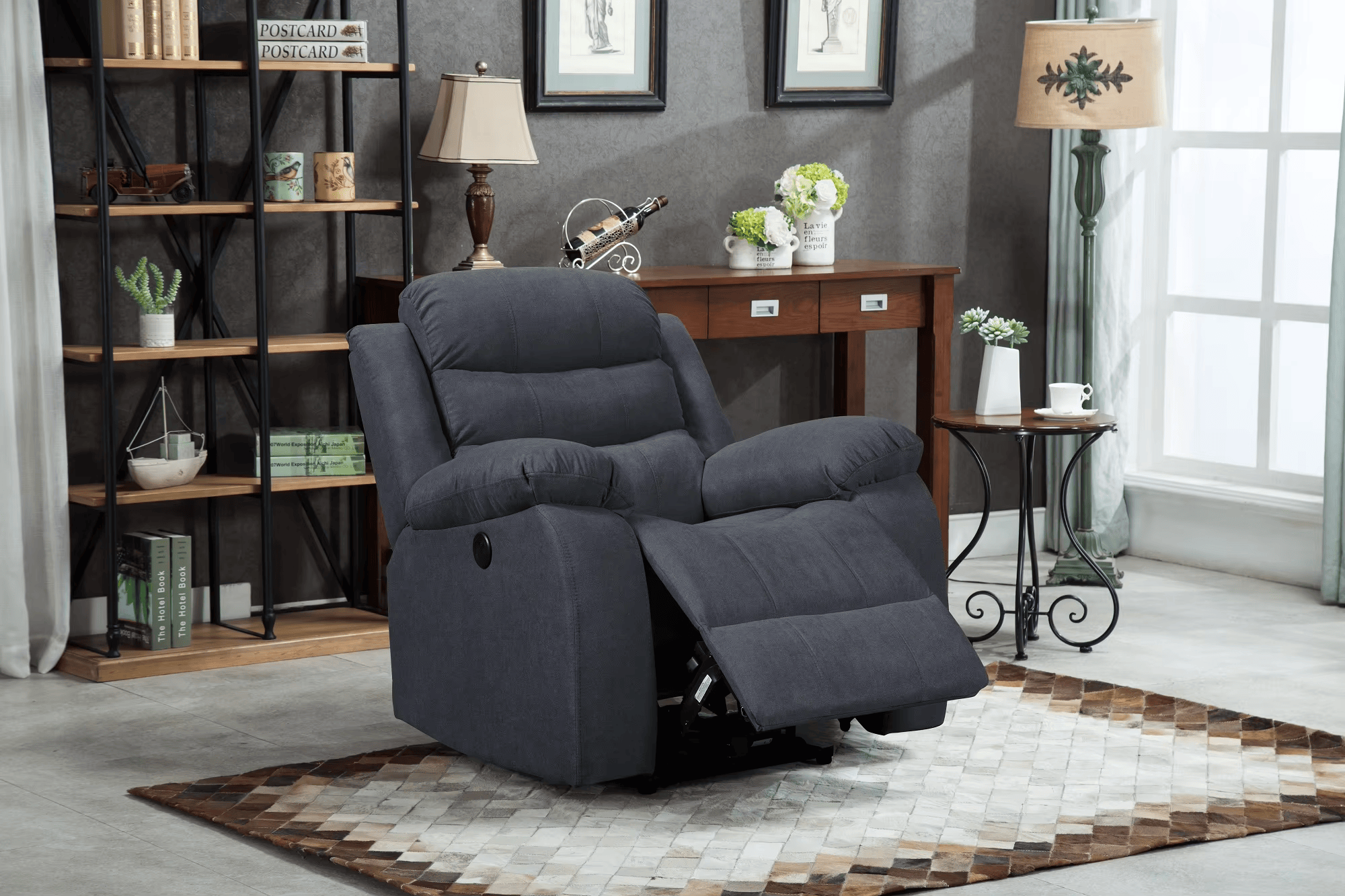 Charcoal ComfortGlid 1-Seater Motorized Recliner Sofa | Rocking & Revolving Recliner sofa