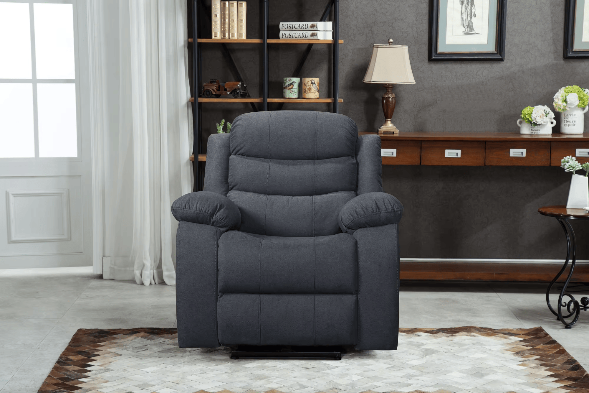 Charcoal HandiRelax Living Lounge Manual Rock & Revolve Recliner Sofa | Single 1 seater recliner chair