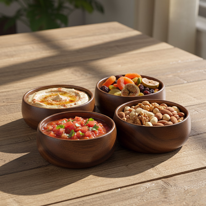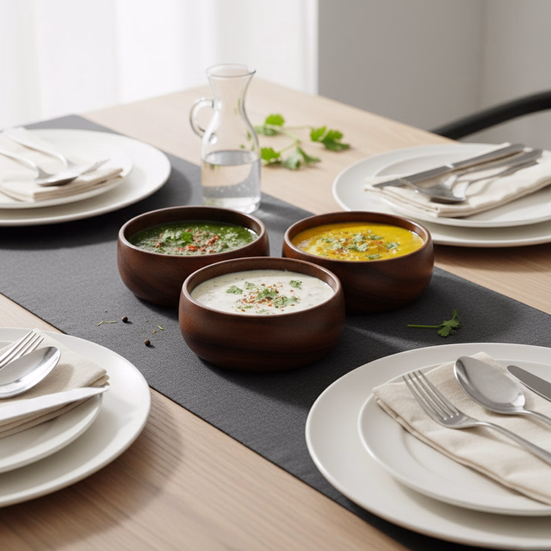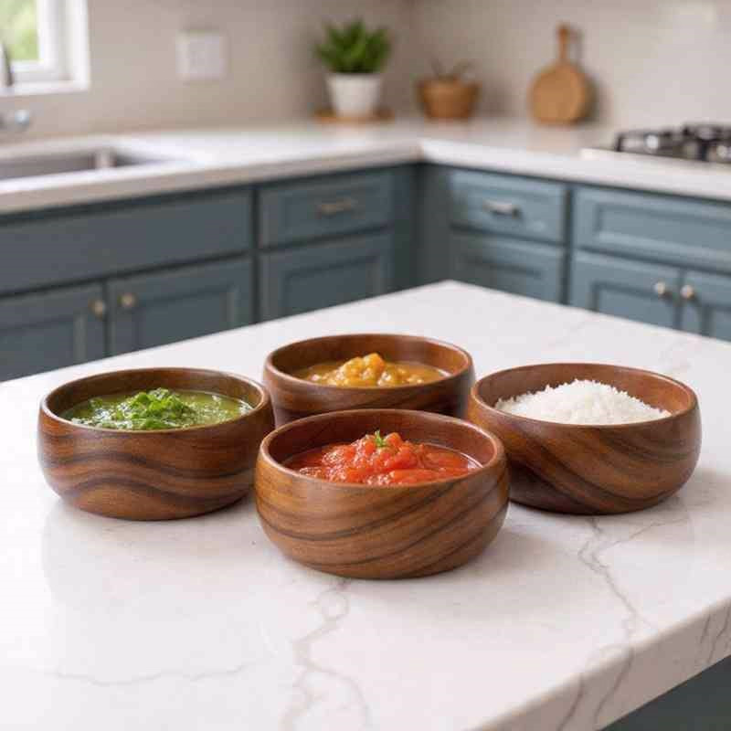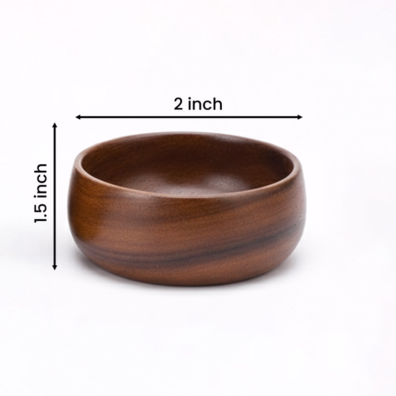 This superior-quality chutney bowl is an elegant addition to any kitchen or dining table. These bowls are made from the highest quality of acacia wood; thus they are strong, sturdy, and perfect to be used in any household. it decorating this piece is apt for today’s modern kitchens and dining room areas. It gives a neat appealing outlook as it has the smooth and polished surface of a wooden chutney bowl.