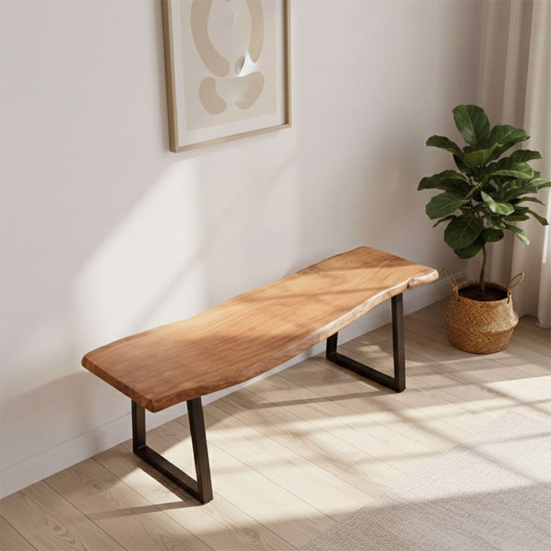 Each earthy elegance bench is handcrafted from solid hardwood with a preserved natural edge, making every piece one of a kind.