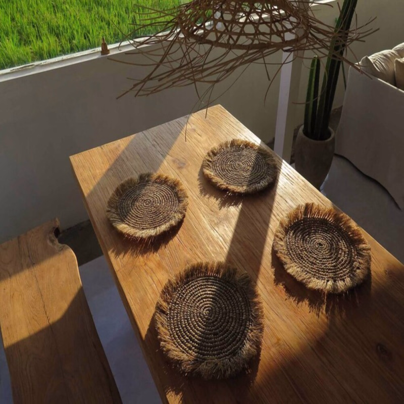 Get a new level of chic on your dining table with the adorable and tasteful Elegant Jute Ruffle Table Coaster. The prices on these coasters are for those who love natural jute material with a small ruffle detail which is benign but adds aesthetic appeal and makes using coasters an environmentally friendly way of protecting your table from stains, spills, and heat. Ideal for people who love to have both practical and aesthetic items at home, these coasters will protect the surface of your furniture and make a smooth and rich addition to the table decor.