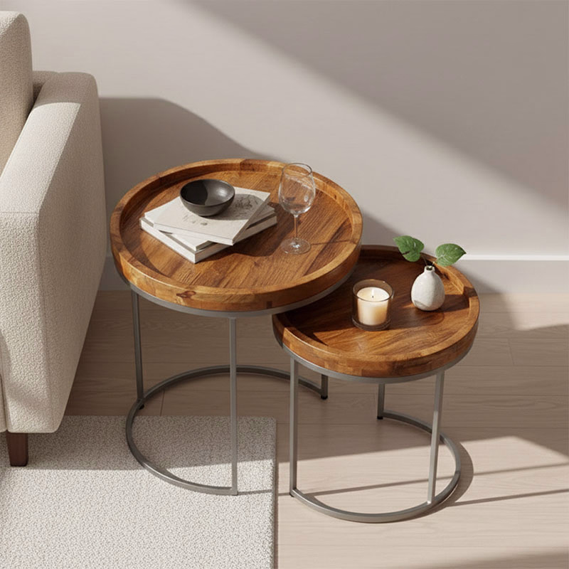 Absolutely. These round nesting tables for living room spaces are ideal for compact areas, offering space-saving nesting functionality without compromising style.