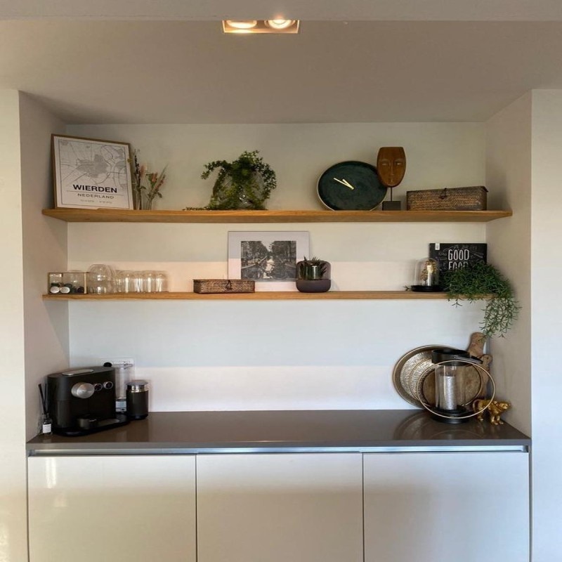 A live edge floating shelf is a wall-mounted wooden shelf that retains the natural edge of the wood, giving it a rustic and organic look. It's designed to appear as if it's "floating" without visible brackets or supports.