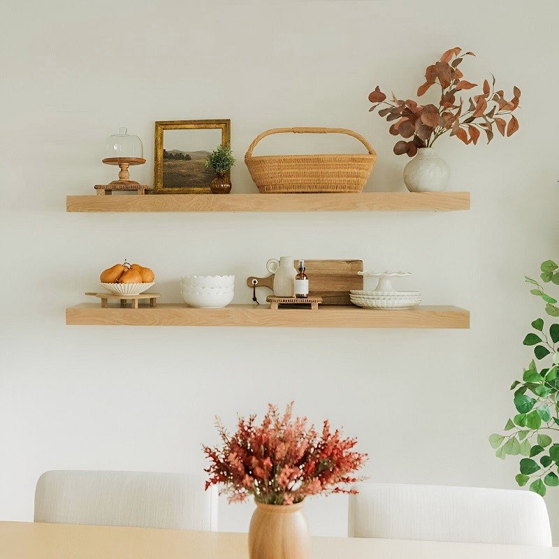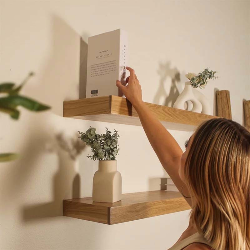 Installing floating shelves is straightforward with the right tools and technique. Here's a step-by-step guide: Gather Tools and Materials Drill Level Measuring tape Pencil Wall anchors (if not drilling into studs) Screws and brackets (provided with the shelf) Choose the Location Decide where you want to install the shelf. Use a level to ensure it's straight and mark the placement on the wall with a pencil. Find Wall Studs Use a stud finder to locate wall studs for a secure installation. If studs aren’t available, use wall anchors suitable for your wall type (drywall, brick, etc.). Mark the Bracket Holes Align the mounting bracket with the pencil marks. Mark the screw holes on the wall through the bracket openings. Drill Pilot Holes Drill pilot holes into the wall at the marked points to make it easier to screw in the brackets or anchors. Attach the Brackets Secure the brackets to the wall using screws. Ensure they are tightly fastened and level. Mount the Shelf Slide the floating shelf onto the brackets, ensuring it sits snugly. Secure the shelf to the brackets if necessary (some designs include locking screws for added stability). Test the Stability Gently press down on the shelf to ensure it’s secure and level before placing any items on it.