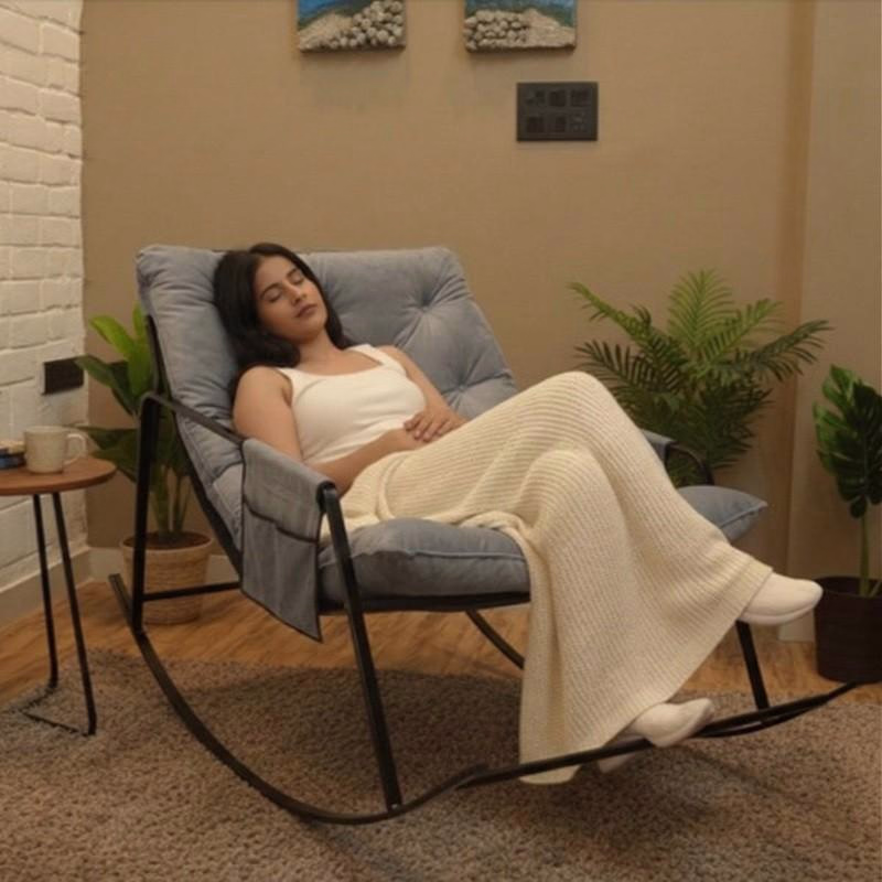 Experience true comfort with this modern rocking chair designed to support the natural curve of your body. The ergonomic backrest gently fits around the waist and spine, helping reduce strain during long sitting sessions while providing a soothing rocking motion for ultimate relaxation at home.
