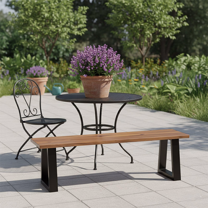 Bring timeless strength and elegance to your outdoor setup with our Heavy-Duty Solid Acacia Wood Outdoor Bench with Rustic Metal Legs. Crafted from durable solid acacia wood and supported by powder-coated metal legs, this bench offers superior stability, weather resistance, and long-lasting use. Its natural wood grain and minimalist rustic design make it a perfect fit for gardens, patios, balconies, or living spaces.