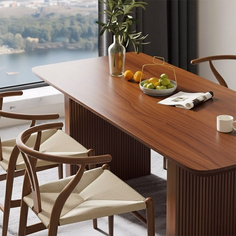 Enhance your dining experience with the LinearOak Luxe Dining Table by Woodensure, crafted from premium Acacia wood for natural durability and warm sophistication. Featuring a rich walnut stain and signature fluted base, this 6-seater table embodies Japandi aesthetics — where form meets purpose in minimalist elegance.