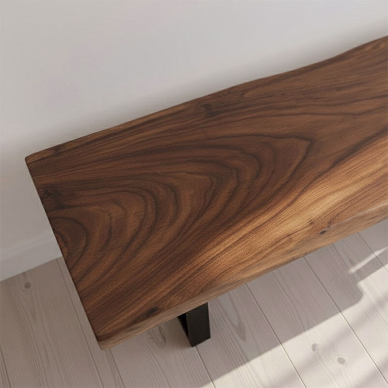 A live edge bench with metal legs offers superior durability, natural aesthetics, and timeless design compared to standard machine-cut benches.