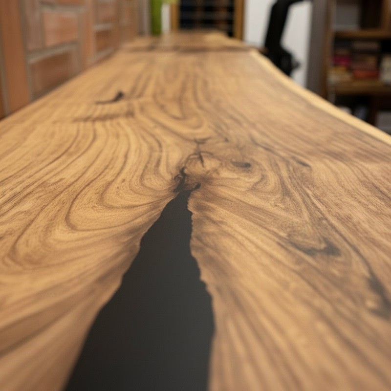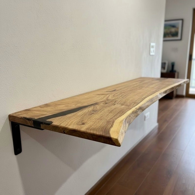 We utilize high-grade epoxy resin for wood table craftsmanship techniques and adapt them specifically for wall-mounted applications. This ensures structural reinforcement, visual clarity, and a smooth surface finish resistant to moisture and daily environmental exposure.