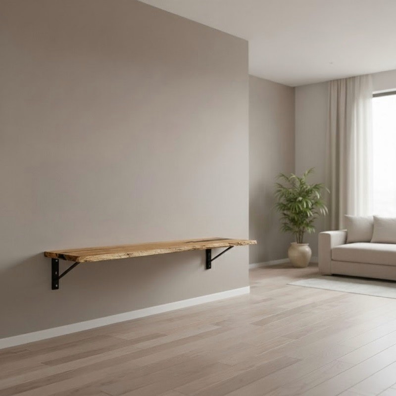 Unlike conventional wall décor, this live edge wall installation acts as a functional art piece. It can serve as a decorative focal point, a minimalist display ledge, or even as a compact live edge wall table for lightweight accessories. Its modular character allows integration into various spatial concepts without overwhelming the room.