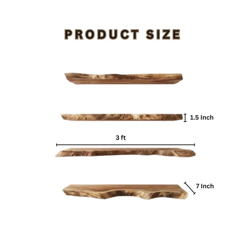 Each shelf measures 36 inches (3 ft) in length, 7 inches in depth, and 1.5 inches in thickness.