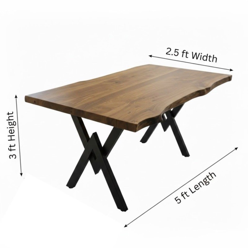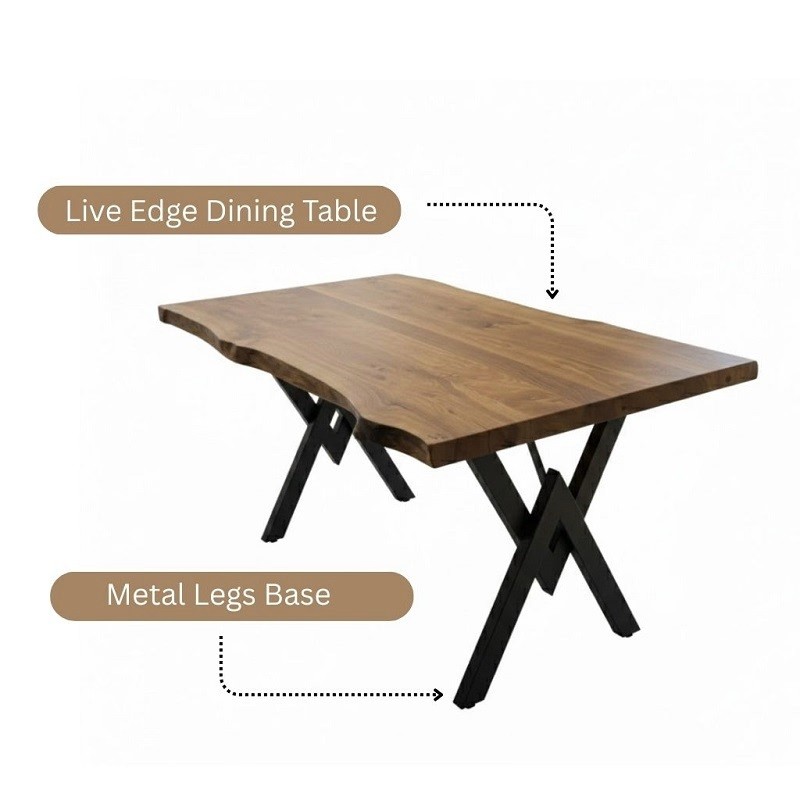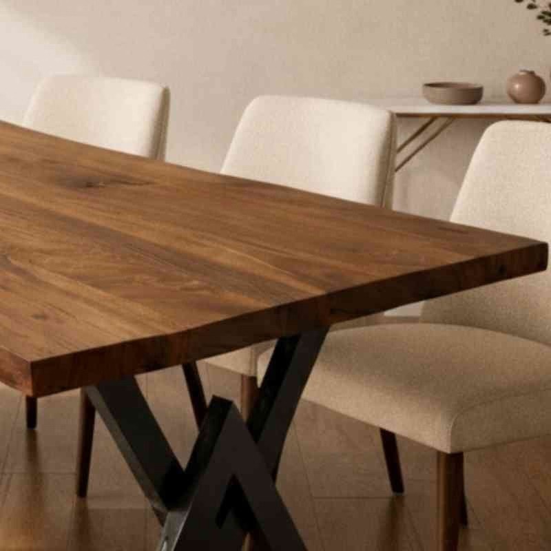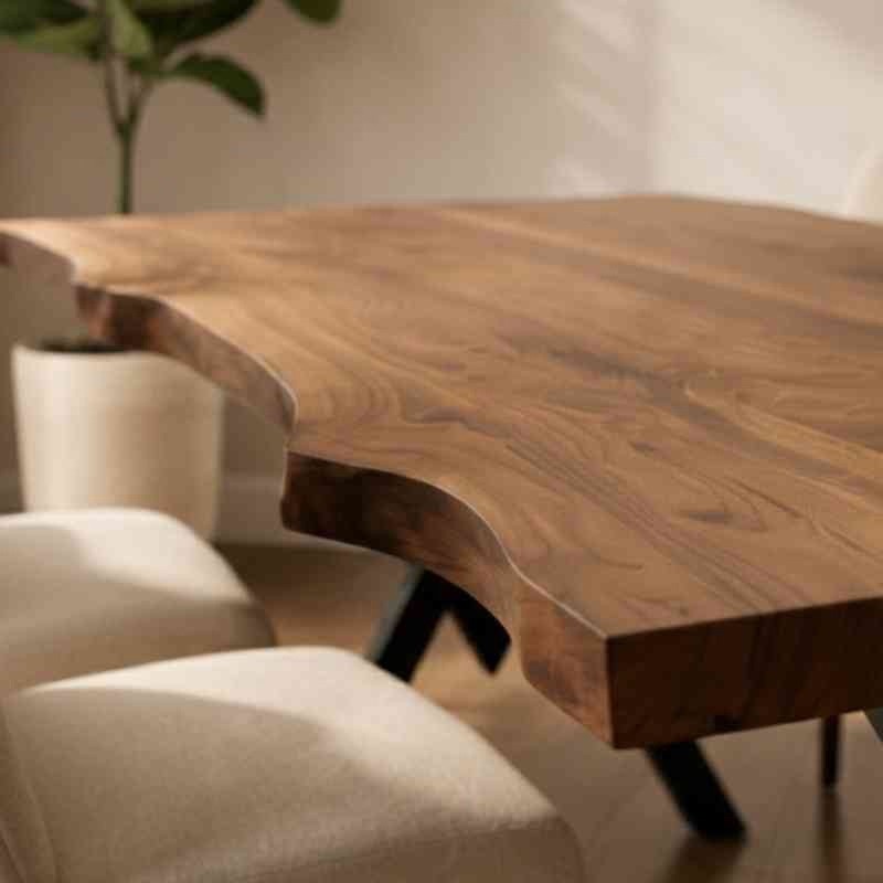 A live edge dining table preserves the natural contours of the tree, maintaining organic edges rather than machine-cut straight lines. This makes each table unique.