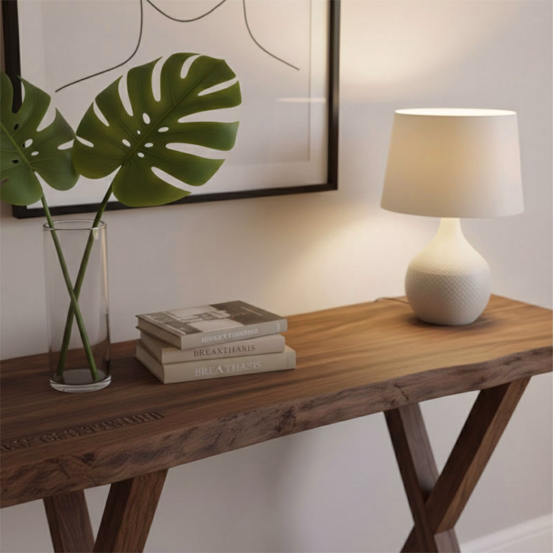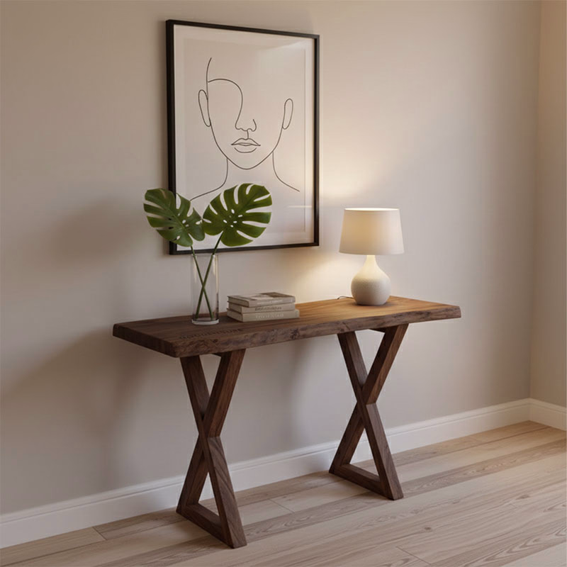 Live Edge Wood Table Top: This is its console table's gorgeous live edge oak trees are primary appeal. Each tabletop displays various grain patterns and cracks the solid wood, but they have been kept at edges.