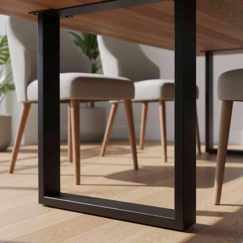 Yes, the table features a solid wood dining table with metal legs design. The metal base provides excellent stability while complementing the natural acacia wood top.