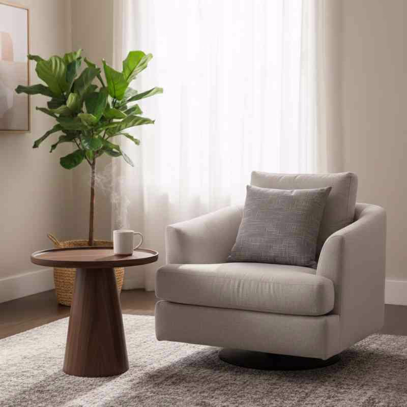 The Round Haven Side Table features a compact round surface and balanced height, fitting well alongside sofas or beds.
