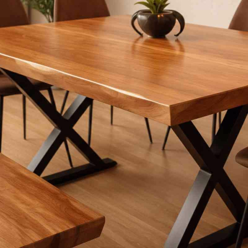This acacia live edge dining table comes paired with a perfectly matched acacia wood dining bench, creating a cohesive and functional dining setup. The sturdy X-shaped metal legs provide excellent stability while adding a modern industrial touch. Whether used as a live edge table with bench or styled separately, this live edge dining table with bench comfortably seats four, making it ideal for family meals, casual gatherings, or everyday dining. The versatile banch table design ensures both comfort and visual balance.