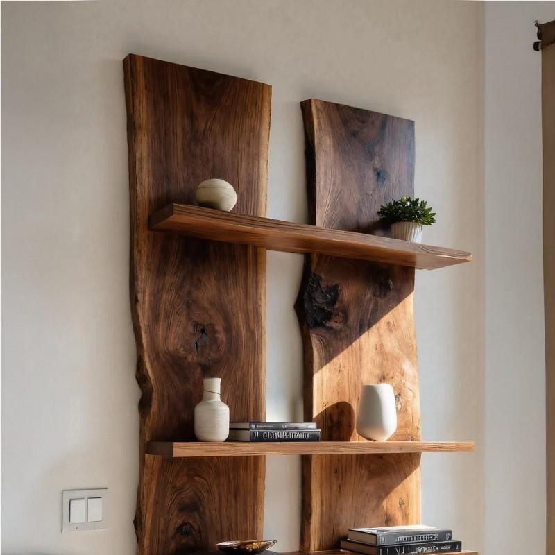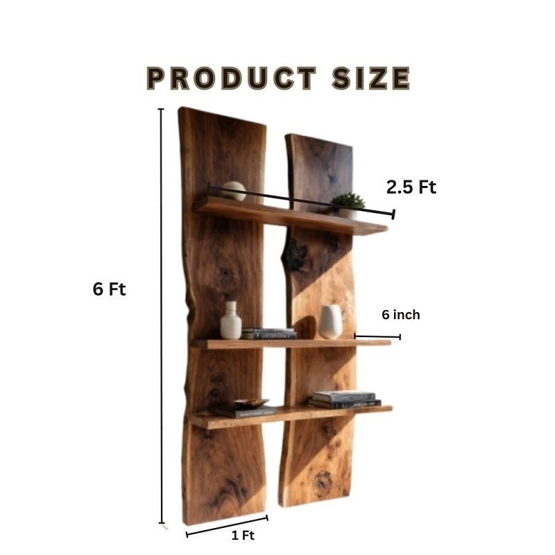 Elevate your interiors with the Rustic Live Edge Wall Shelf Panel Set – Solid Acacia Wood Floating Display Unit, a perfect blend of natural beauty and functional design. This rustic live edge wall shelf is handcrafted from premium acacia wood, showcasing rich grain patterns and organic edges that make every piece unique. Designed as a live edge wall shelf panel set, it combines vertical slabs with floating shelves to create a striking statement wall shelf for modern and rustic spaces alike.