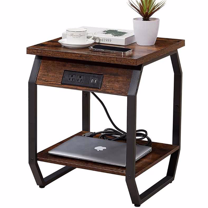 Engineered wood with a strong metal frame base.