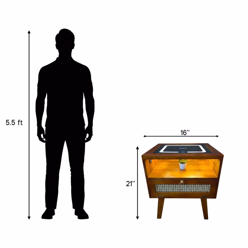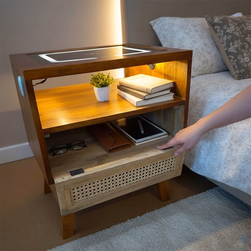 Upgrade your home with this beautifully crafted Smart Solid Wood Bedside Table, designed for modern lifestyles. Made from premium acacia hardwood, this table brings together thoughtful design and smart technology to serve as both a furniture piece and a functional charging station.