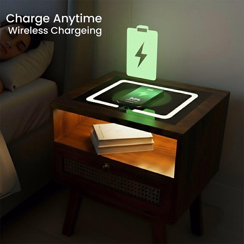 Forget cables and bulky adapters. This bedside table comes with a Qi-certified wireless charging pad seamlessly built into the surface. Just place your phone on top, and let it charge while you rest. Compatible with iPhone, Samsung, Pixel & more. No cords. No fuss. Just smart convenience.