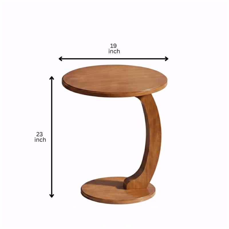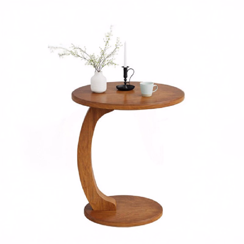 A C-shape side table is designed to slide under sofas or beds, allowing the tabletop to come closer for easy access. This solid wood round C-shape side table is ideal for holding laptops, drinks, books, or decor in living rooms and bedrooms.