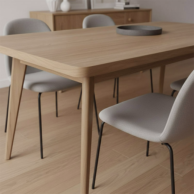 The Aero Solid Wood Dining Table is a refined blend of craftsmanship and minimalist design, created to complement both modern and classic interiors. Made entirely from 100% solid acacia wood, this rectangular table showcases warm, natural grain patterns that make every piece unique. Its clean lines and elegantly tapered legs give it a subtle mid-century modern appeal, allowing it to fit seamlessly into casual dining spaces as well as more formal settings.