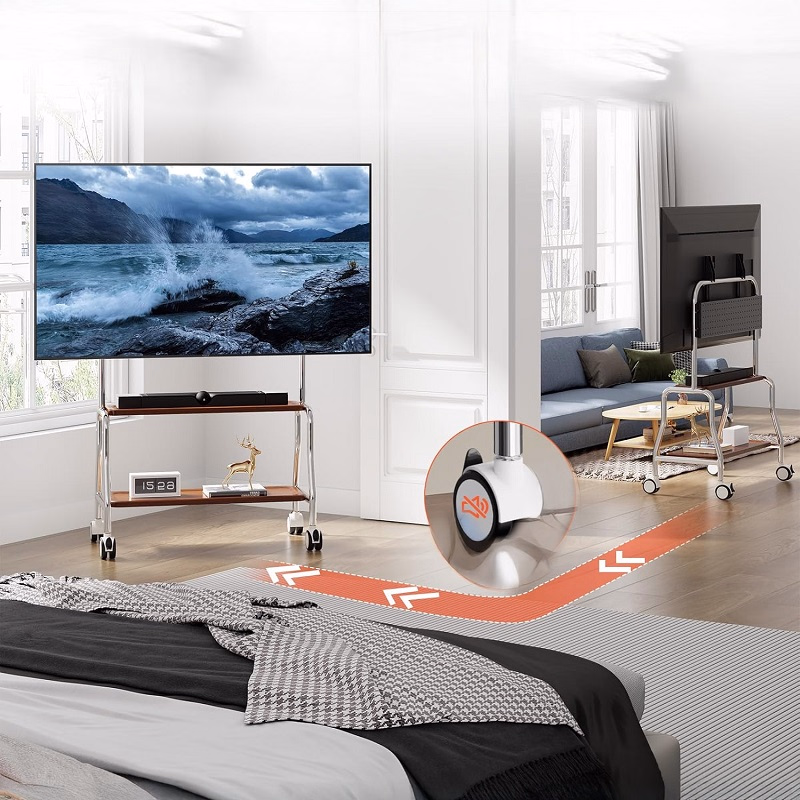 Mobile & Versatile Design: Easily move your TV setup from one room to another with lockable caster wheels.