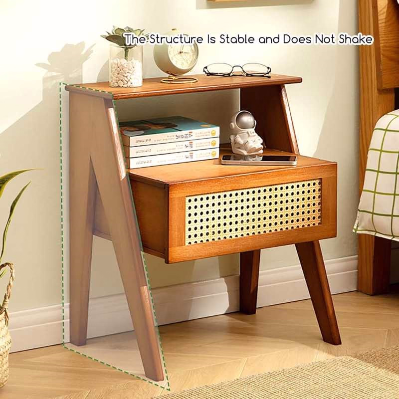 The sturdy bamboo construction allows the bamboo rattan nightstand to support bedside lamps, books, and decorative accessories comfortably.