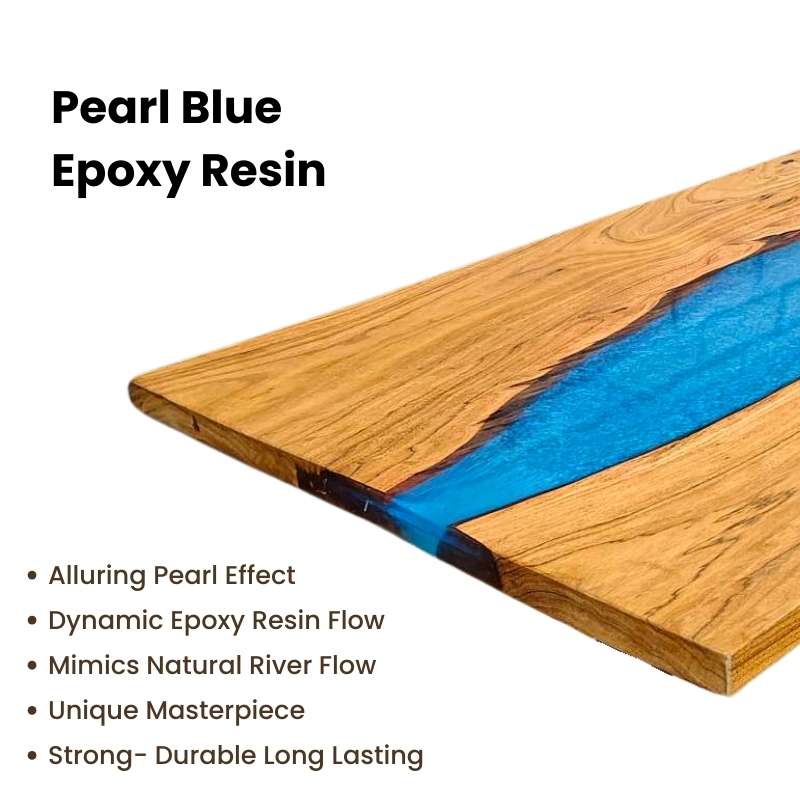 River Design: The pearl blue epoxy resin creates a calming and sophisticated aesthetic, while the river design adds a touch of natural beauty. The river can be customized to your preference, incorporating elements like epoxy river.