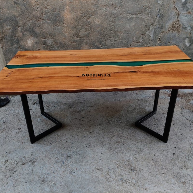 A Teal Epoxy Resin Dining Table is a stunning and unique piece of furniture designed to add a touch of elegance and sophistication to any dining space. It is crafted using a combination of high-quality materials and a specialized epoxy resin that is tinted in a beautiful teal color.