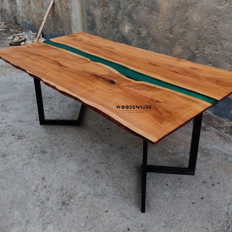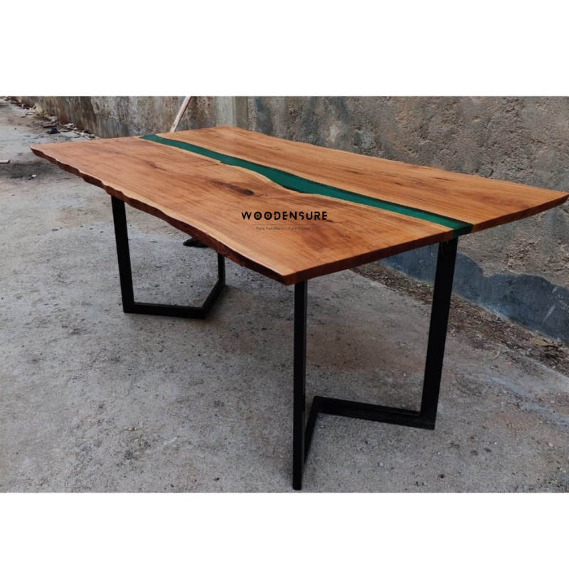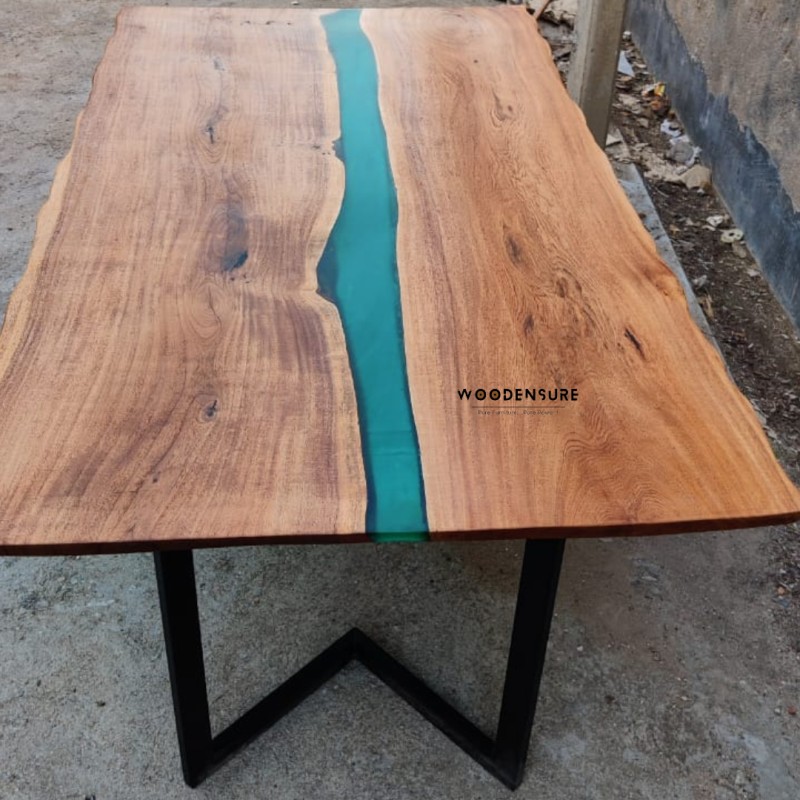 Teal Epoxy River Resin live edge Dining Table 8 Seater dining Table