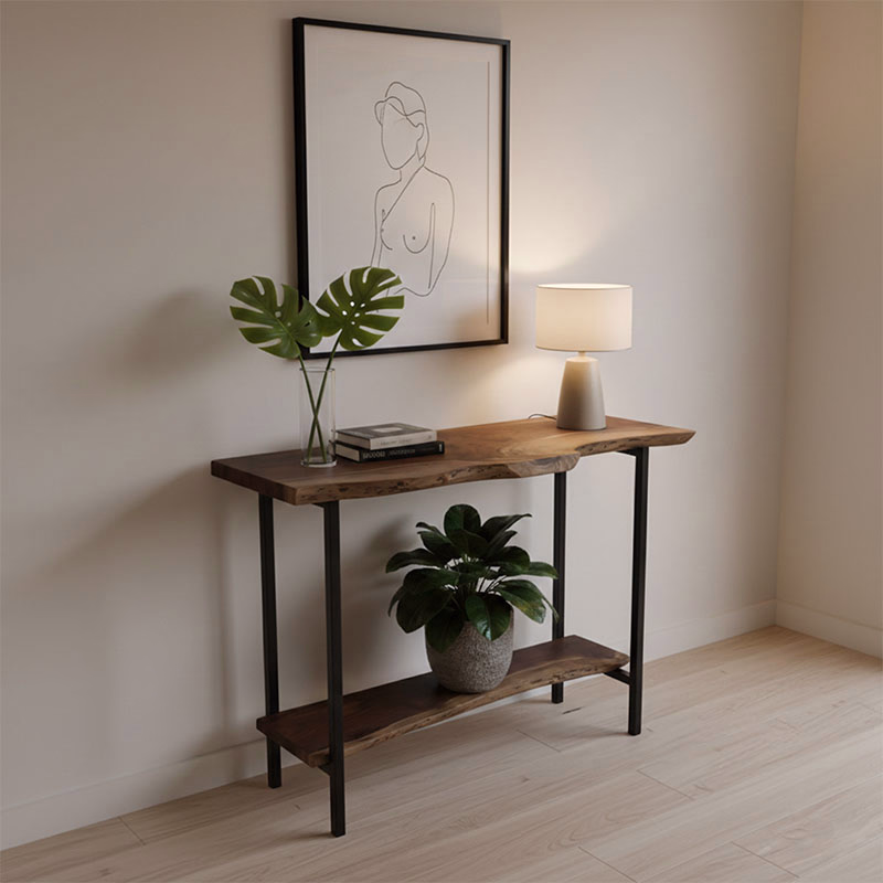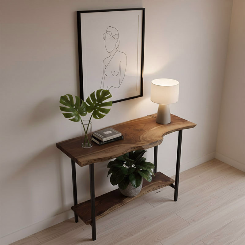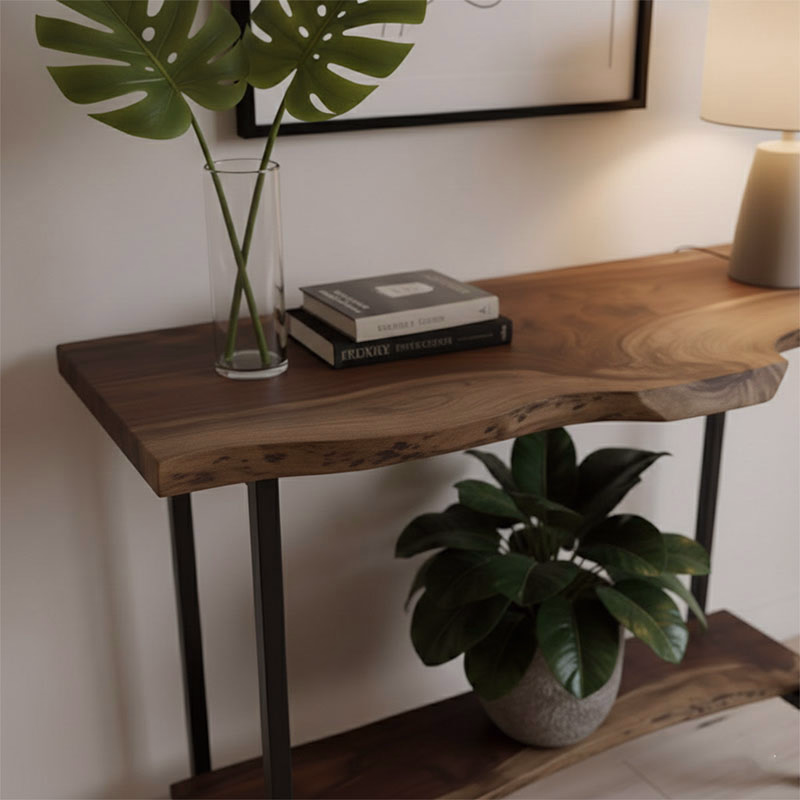 Beautiful and useful, this is a "Timber Wooden Live Edge Console Table" that improves every home. rustic style, natural beauty, and timeless appeal, this is a console table allows the outside inside and makes any space seem calm and comfortable.