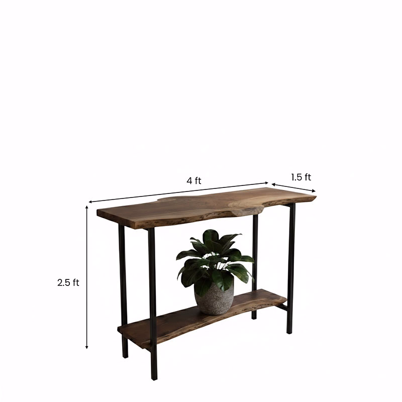 Introducing this "Timber Wooden Live Edge Console Table" dazzling mix of rustic beauty and organic reach that draws the glory of nature inside your home. The console table shows the natural beauty of wood with its live edge wood table top and natural wood finish, giving a touch of stylish rustic charm to any space. Here's a thorough definition.