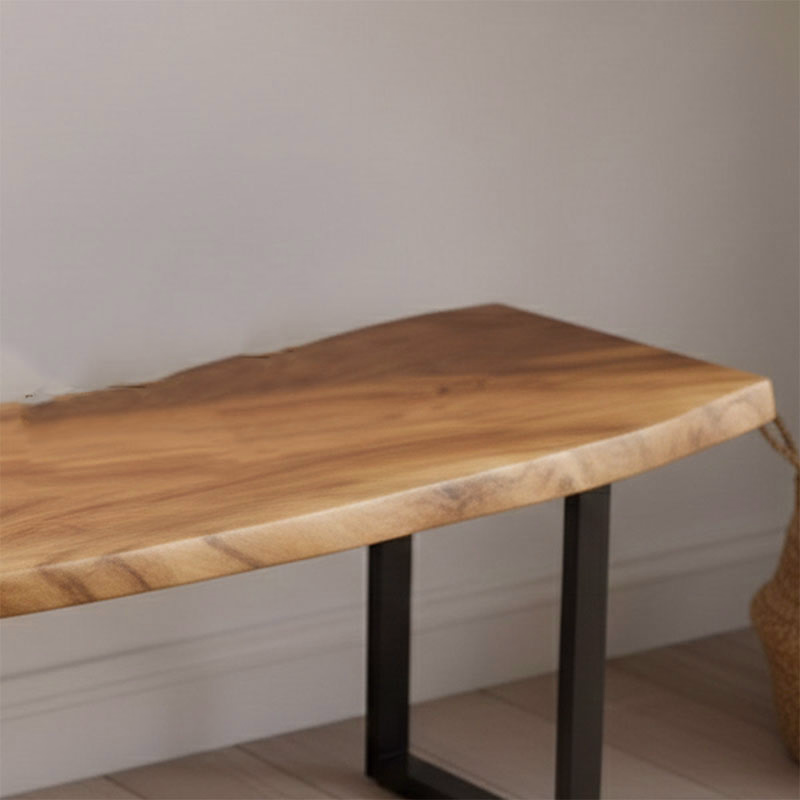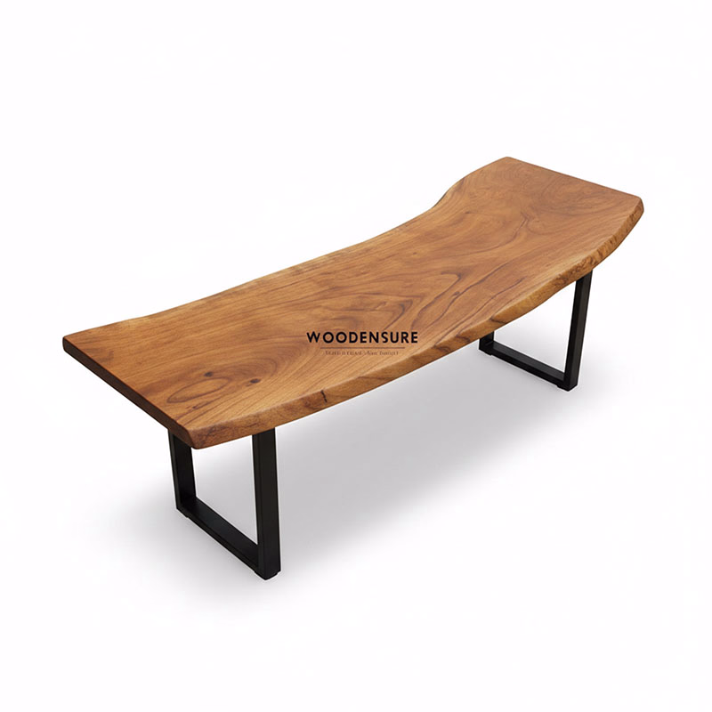 The Wildwood Live Edge Bench is a premium example of wild wood furniture that celebrates the raw, untamed beauty of nature. Expertly handcrafted in India from a solid slab of natural wood, this handcrafted live edge bench preserves the original contours and grains of the tree, making every piece truly one of a kind. Designed with a strong yet elegant base in metal or wood, it offers durability while complementing the organic charm of the top. Variants with wildwood live resin detailing further enhance its visual depth and modern appeal.